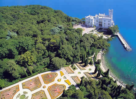 Asa cum v-am povestit ma simt realmente bine in Trieste. Imi place orasul, asezat intre Carso si mare, cu strazile ce dau toate spre mare, cu constructii in stil austriac, cu castele lui, unul dintre ele fiind Miramare. Il aveti in imagine. Se vede si albastrul incredibil al marii, care impreuna cu cu verdele parcului iti incanta privirea.